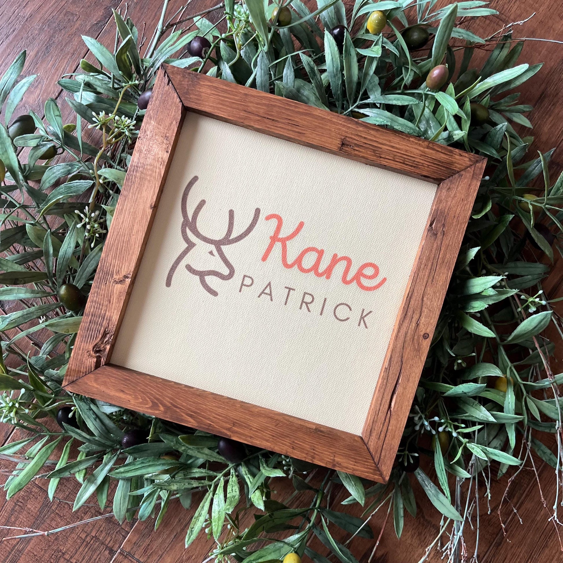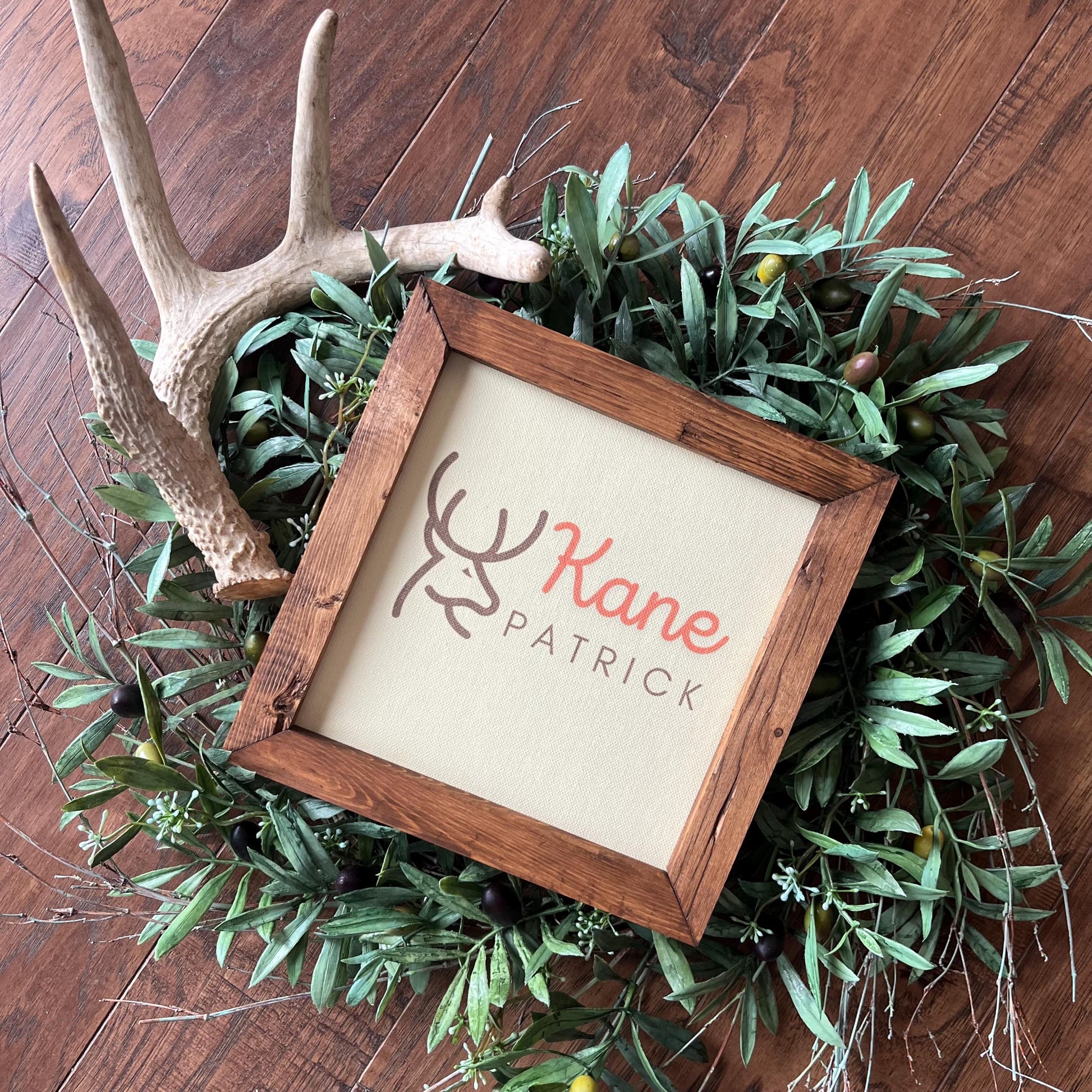 Deer Hunting Theme Baby Name Nursery Room Decor 9.5x9.5 8 inch Personalized First Name, Middle Name Baby Shower Gift Newborn Welcome Baby