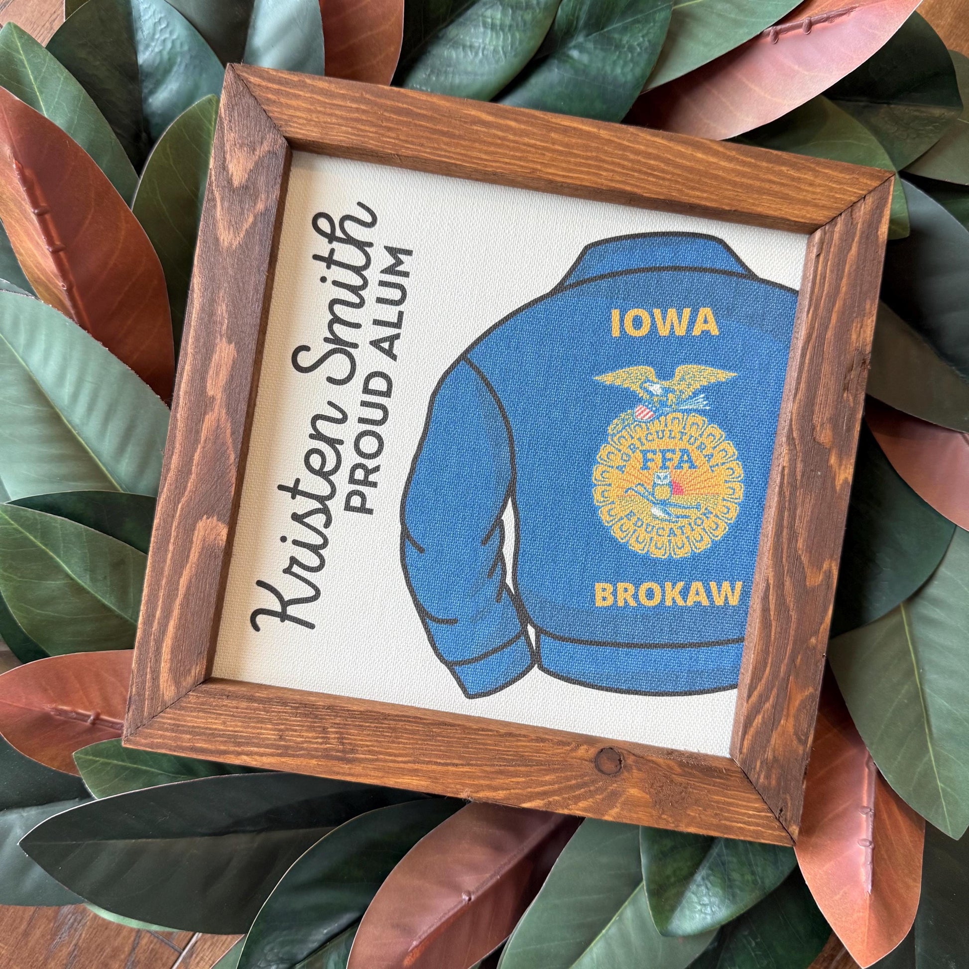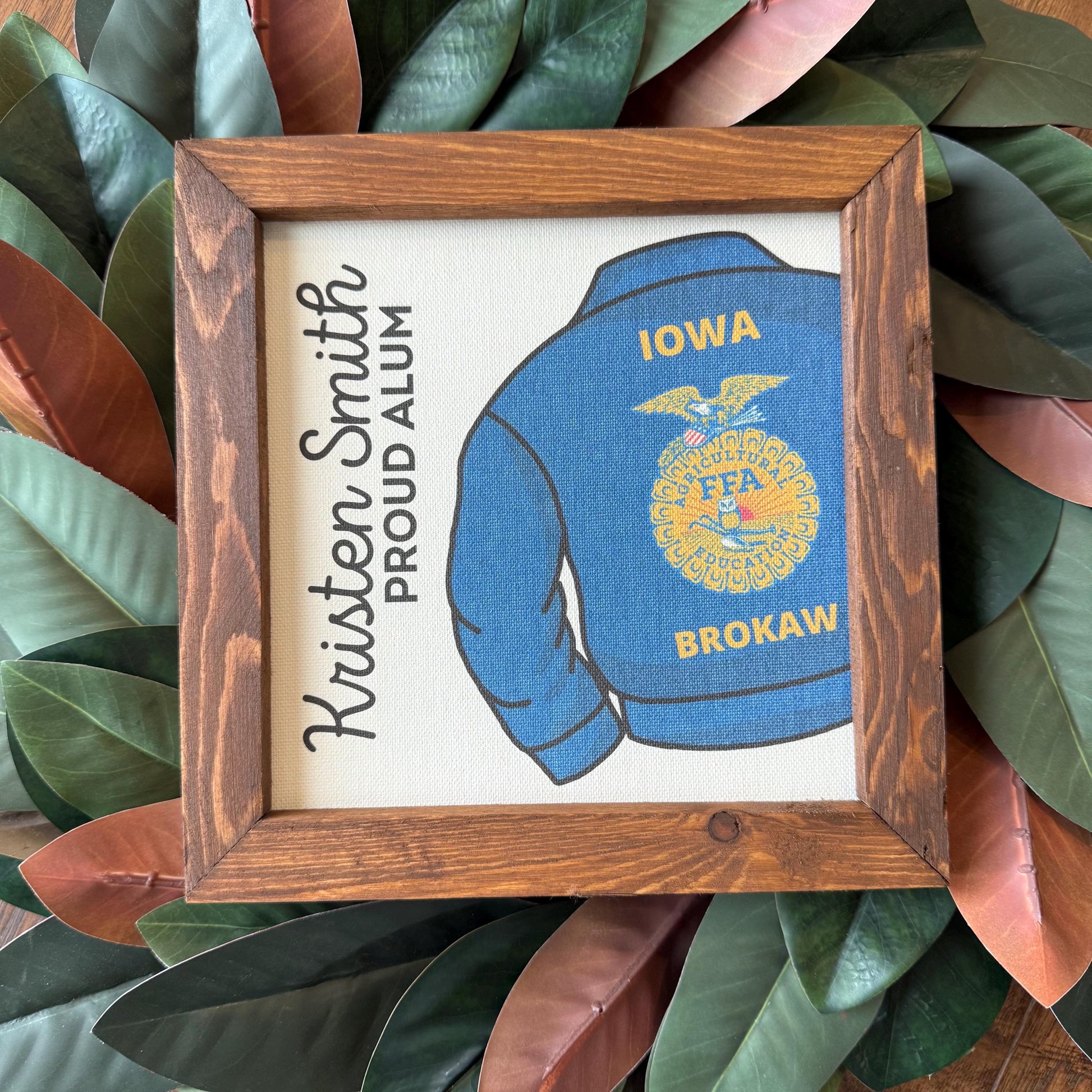FFA Proud Alum Sign Gift 9.5x9.5 8 inch Reclaimed Wood Frame Blue Jacket Official Dress State Chapter Gift Affinity Licensed