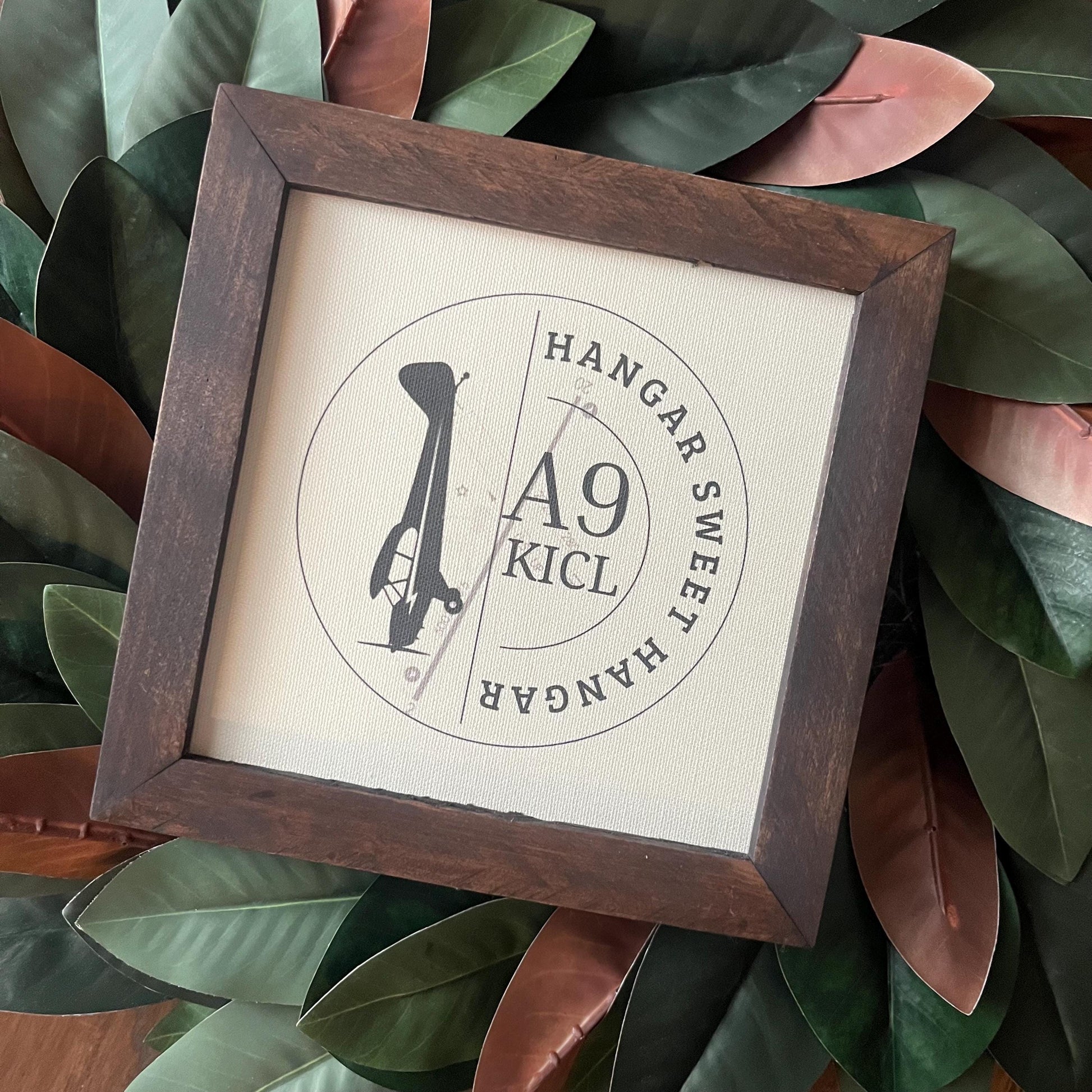 Hangar Sweet Hangar sign 9.5x9.5 8 inch reclaimed wood canvas print hangar number, airport code, runway, type of plane